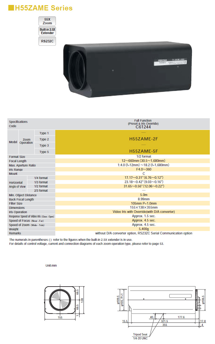 | The PENTAX CCTV Lens provides quality images with proven reliability! |