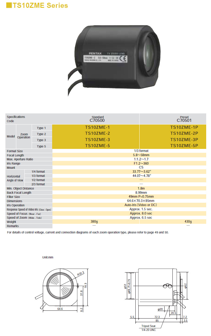 | The PENTAX CCTV Lens provides quality images with proven reliability! |