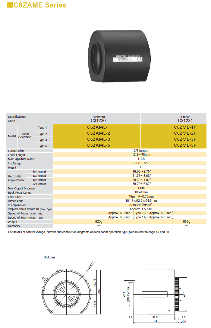 | The PENTAX CCTV Lens provides quality images with proven reliability! |