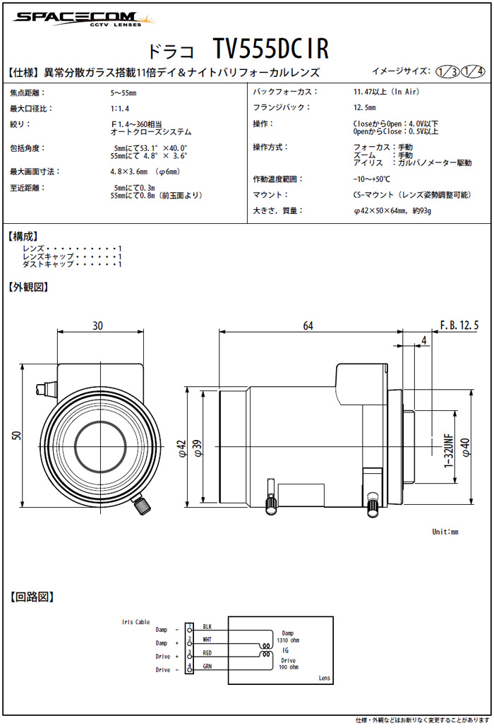 [SPACECOM]Day and Night»ç¾ç TV555MIR 5-55mm DC IRIS 1/3ÀÎÄ¡(°ßÀû¿äû)