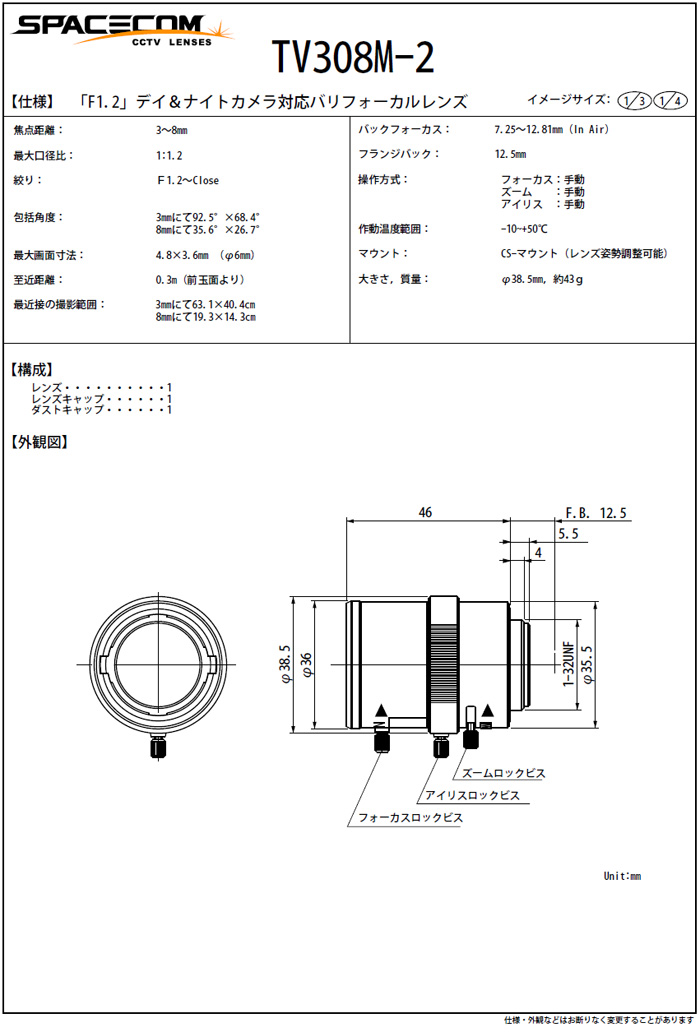 [SPACECOM]Day and Night»ç¾ç TV308M-2 3-8mm Manual IRIS 1/3ÀÎÄ¡(°ßÀû¿äû)