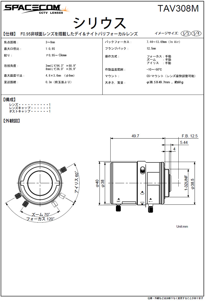 [SPACECOM]Day and Night»ç¾ç TV308M 3-8mm Manual IRIS 1/3ÀÎÄ¡(°ßÀû¿äû)