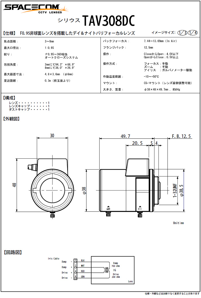 [SPACECOM]Day and Night»ç¾ç TV308DC 3-8mm DC IRIS 1/3ÀÎÄ¡(°ßÀû¿äû)