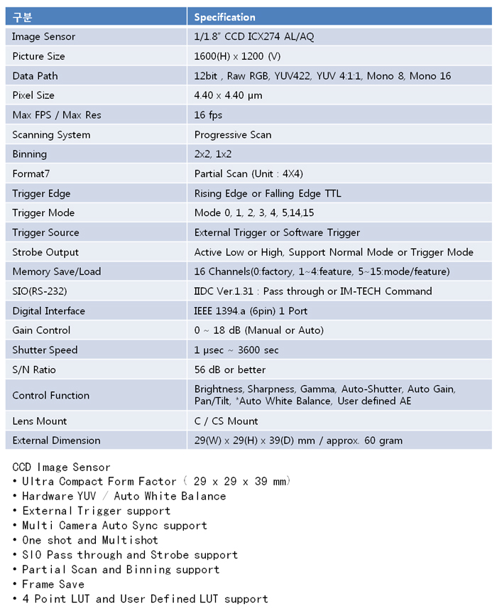 [IMI]PEARL CCD¹®ÀÚÀνÄÄ«¸Þ¶óVISION¿ë Èæ¹éÄ«¸Þ¶ó(1600x1200)(IMB-20FT)(°ßÀû¹®ÀÇ)