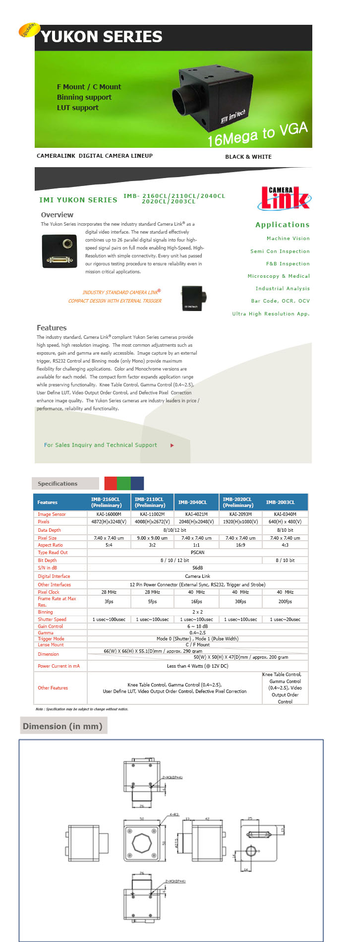 [IMI]Yukon CCD Ä®¶ó¹®ÀÚÀνÄÄ«¸Þ¶ó IMB-2020CL(1920x1080)(°ßÀû¹®ÀÇ)=>´ÜÁ¾!