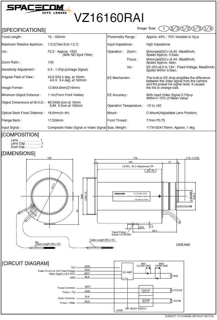 [SPACECOM]Motorized Zoom Lens VZ16160RAI 10¹èÁÜ (16-160mm) 1ÀÎÄ¡ Video IRIS(°ßÀû¿äû)