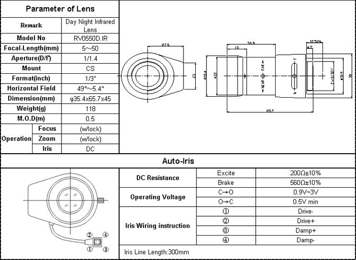 [RICOM]IRÁ¶¸í¿ë·»Áî/Àû¿Ü¼±Á¶¸í·»Áî SP0550AIR/RV0550D.IR IR LENS 1/3" Day and Night Lens(°ßÀû¿äû)
