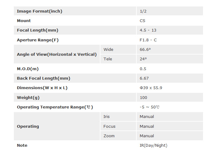 [TOKINA]Mega Pixel Lens TVR4518HDIR (4.5-13mm) 1/2ÀÎÄ¡ IRÁ¶¸í´ëÀÀ (°ßÀû¿äû)