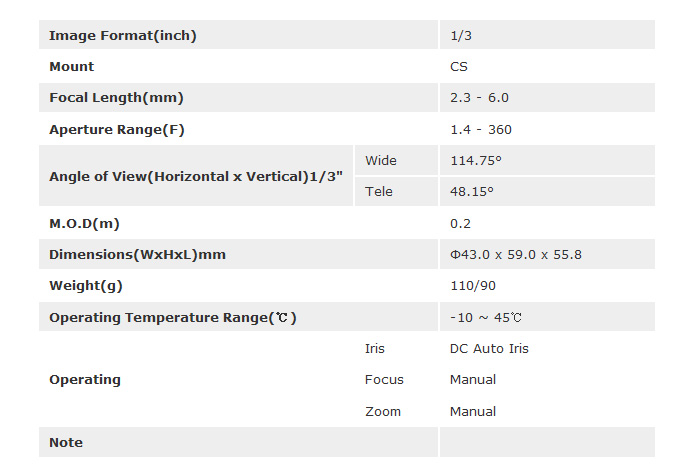 [TOKINA]°¡º¯ÃÊÁ¡ Lens TVR2314DC(2.3-6.0mm) 1/3ÀÎÄ¡ DC IRIS(°ßÀû¿äû)