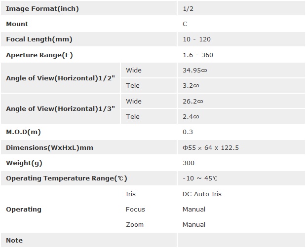 [TOKINA]Vari-Focal Lenses TVR1016DC(10 - 120mm) 1/2ÀÎÄ¡ (°ßÀû¿äû)