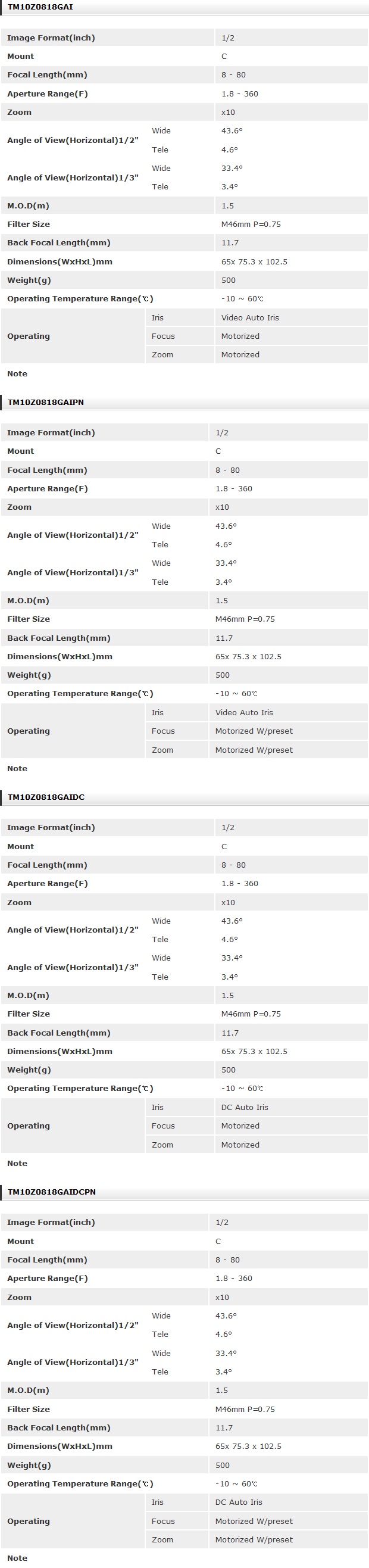 [TOKINA]Standard Motorized Zoom Lenses TM10Z0818GAI(8 - 80mm) 1/2ÀÎÄ¡ (°ßÀû¿äû)