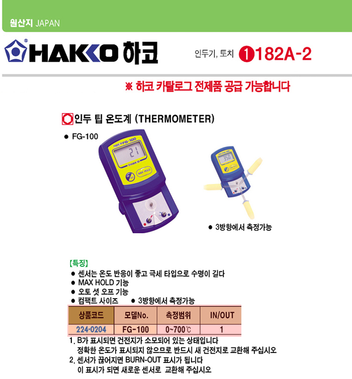 [HAKKO]ÀÎµÎÆÁ ¿Âµµ°è(FG-100, 0-700µµ)(Thermometer)