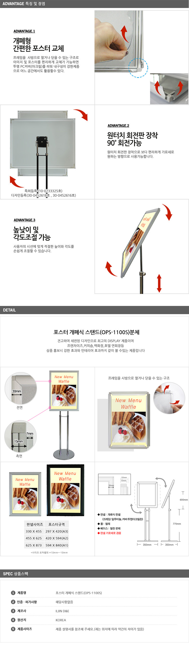 [ÀÏÁø] Àü½Ã¿ë Æ÷½ºÅÍ °³Æó¾×ÀÚ ½ºÅĵå(OPS-1100S, ½Ç¹ö ºÐüµµÀå, ȸÀüÇü, ÆÇ³Ú»çÀÌÁî A3/A2/A1 ¼±Åð¡´É)