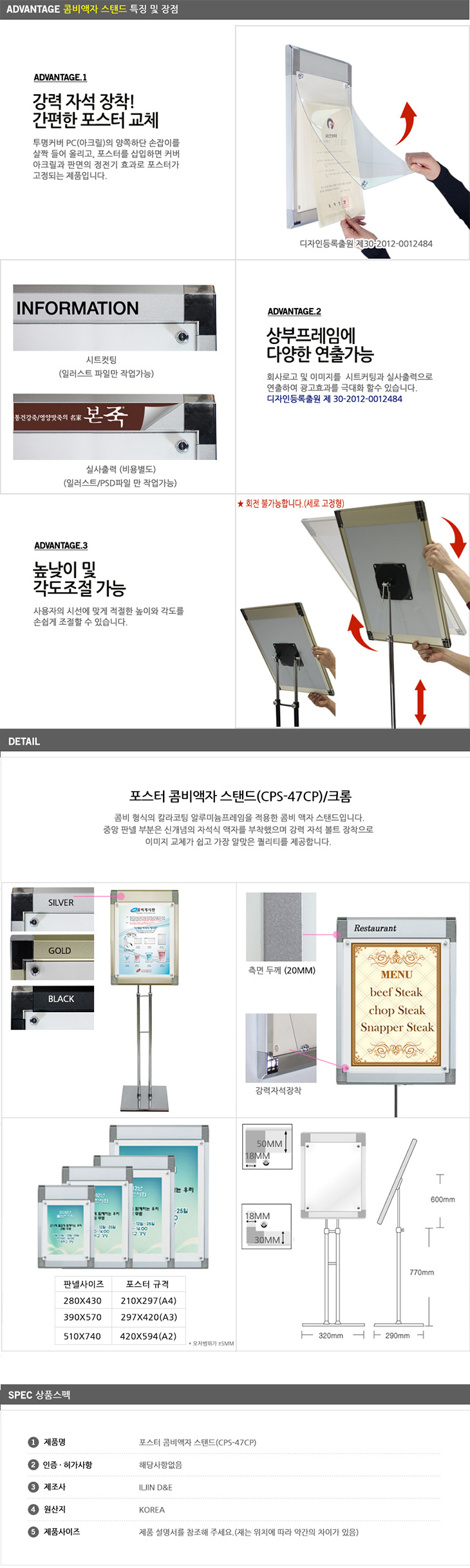 [ÀÏÁø] Àü½Ã¿ë Æ÷½ºÅÍ ÄÞºñ ¾×ÀÚ ½ºÅĵå(CPS-47CP, Å©·Òµµ±Ý, »çÀÌÁî A4/A3/A2¿ë ¼±Åð¡´É)