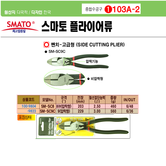 [½º¸¶Åä] »«Ä¡-°í±ÞÇü(¾ÐÂøÇü, SM-SC9C, 229mm, 9ÀÎÄ¡)(Side Cutting Plier):2/7 ÇöÀç ÀϽÃǰÀý!!