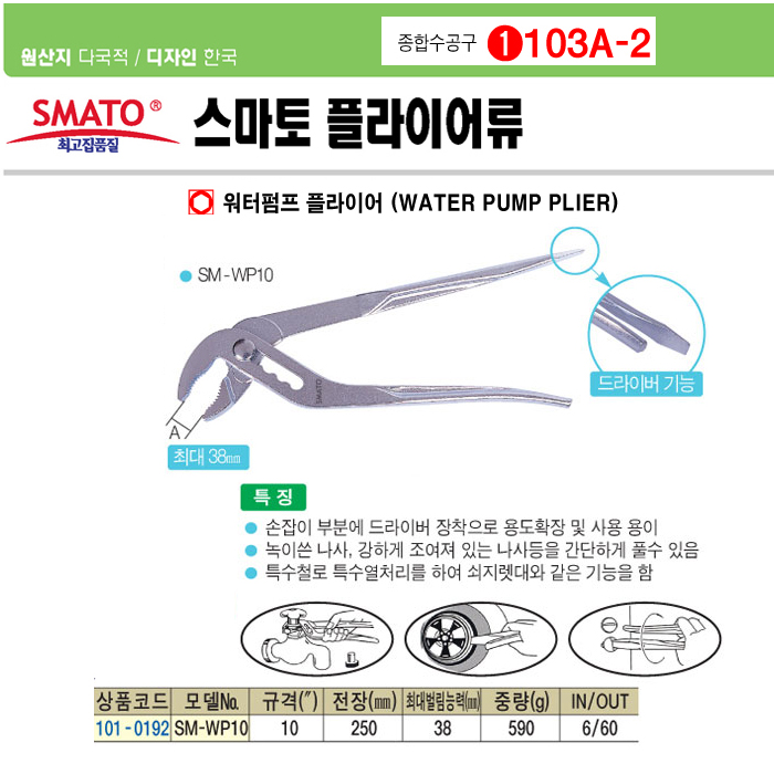 [½º¸¶Åä] ¿öÅÍÆßÇÁ ÇöóÀ̾î(SM-WP10, 250mm, 10ÀÎÄ¡)(Water Pump Plier)