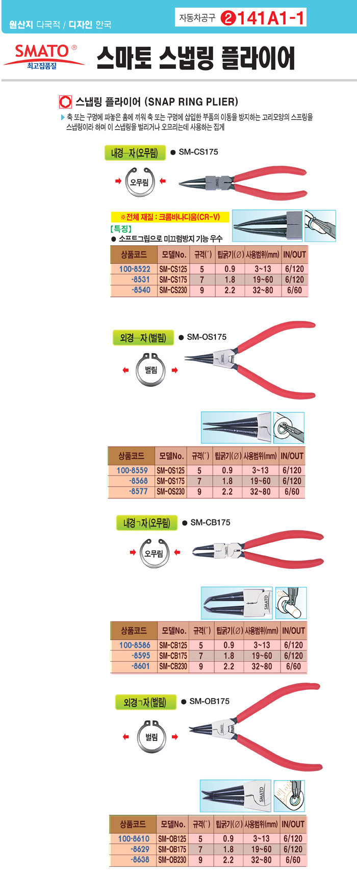 [½º¸¶Åä] ½º³À¸µ ÇöóÀÌ¾î ³»°æ ¤Ñ ÀÚ (SM-CS230, 9ÀÎÄ¡, 32-80mm, Á÷ ¿À¹Ç¸²)(Snap Ring Pliers Internal ¤Ñ type)