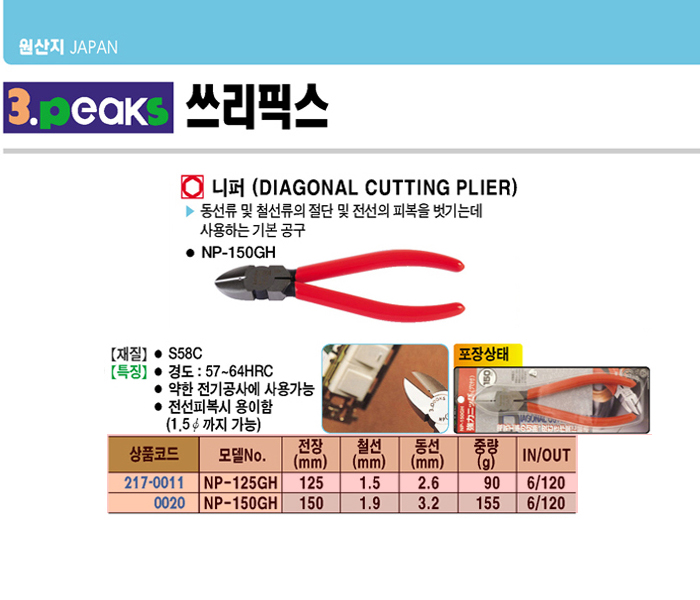 [3peaks] ´ÏÆÛ(NP-150GH, 150mm)(Diagonal cutting plier)