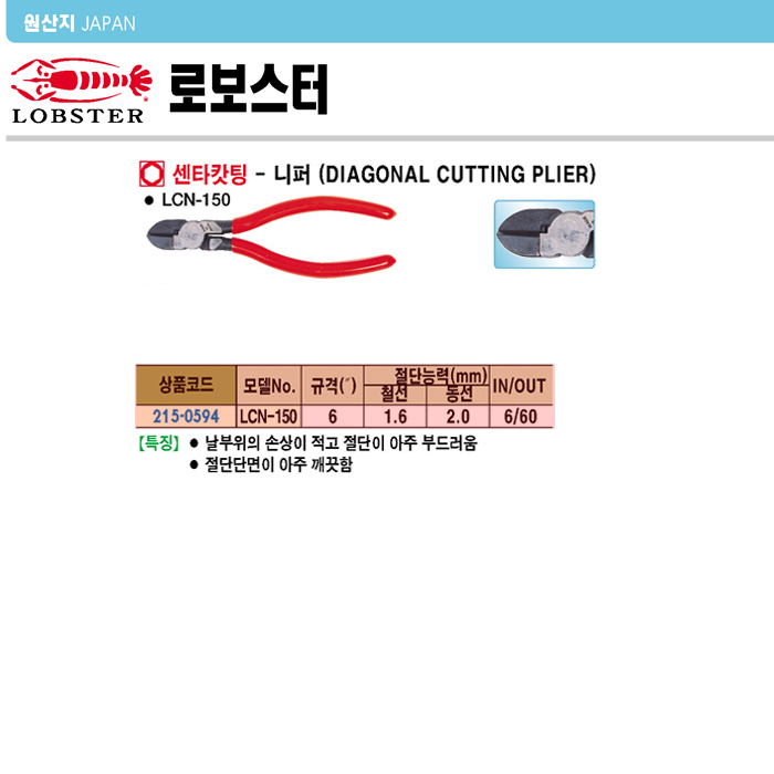 [·Îº¸½ºÅÍ] ¼¾Å¸Ä±ÆÃ ´ÏÆÛ(LCN-150, 6ÀÎÄ¡)(Diagonal Cutting Plier)
