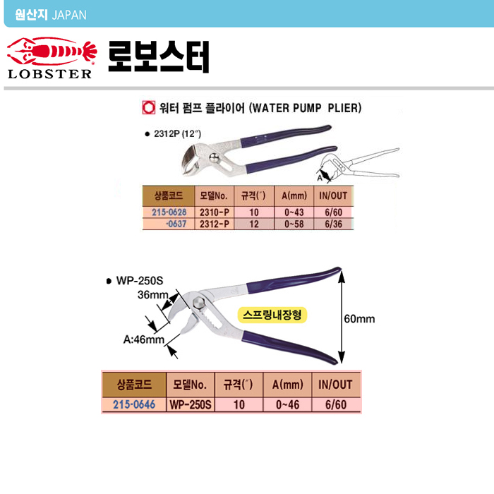 [·Îº¸½ºÅÍ] ¿öÅÍÆßÇÁ ÇöóÀ̾î(WP-250S, 10ÀÎÄ¡)(Water Pump Plier)