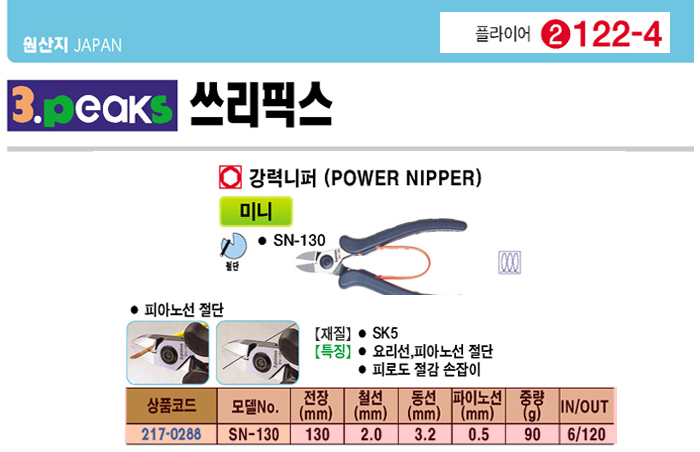 [3peaks] ¹Ì´Ï °­·Â ´ÏÆÛ(SN-130, 130mm)(Power Nipper)