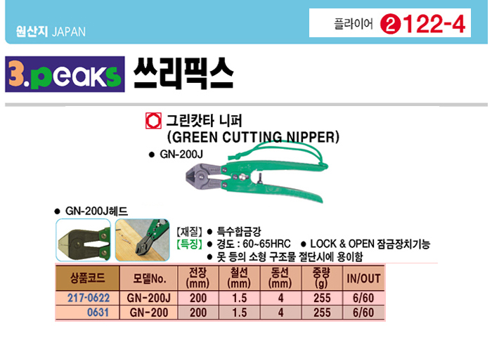 [3peaks] ±×¸°Ä±Å¸ ´ÏÆÛ(GN-200, 200mm)(Green Cutting Nipper)