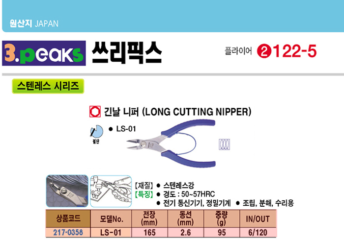 [3peaks] ½ºÅÙ·¹½º ±ä³¯´ÏÆÛ(LS-01, 165mm)(Long Cutting Nipper)