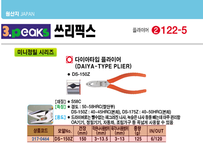 [3peaks] ¹Ì´ÏÁ¤¹Ð ´ÙÀ̾ÆÅ¸ÀÔ ÇöóÀ̾î(DS-150Z, 150mm)(Daiya Type Plier)