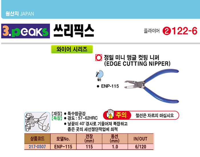 [3peaks] ¿ÍÀ̾î Á¤¹Ð ¹Ì´Ï¾Þ±Û ıÆÃ´ÏÆÛ(ENP-115, 115mm)(Edge Cutting Nipper)