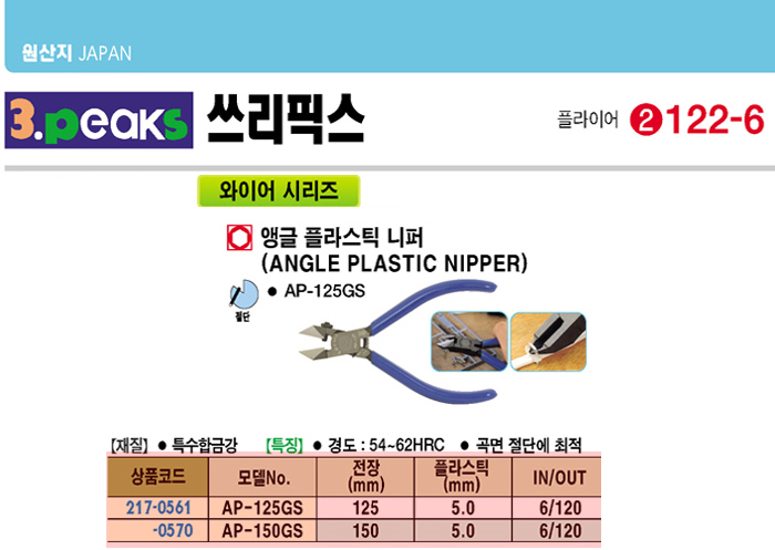 [3peaks] ¾Þ±Û ÇÃ¶ó½ºÆ½ ´ÏÆÛ(AP-150GS, 150mm)(Angle Plastic Nipper)