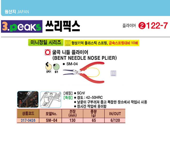[3peaks] ¹Ì´ÏÁ¤¹Ð ±¼°î ´ÏµéÇöóÀ̾î(SM-04, 130mm)(Bent Needle Nose Plier)