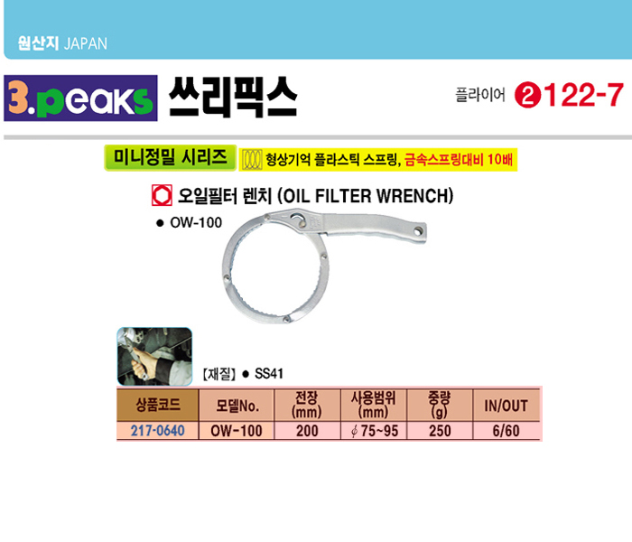 [3peaks] ¿ÀÀÏÇÊÅÍ ·»Ä¡(OW-100, 200mm)(OIL Filter Wrench)=>Á¦Ç°´ÜÁ¾!