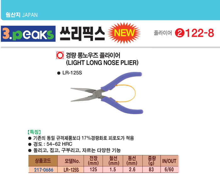 [3peaks] °æ·® ·Õ³ë¿ìÁî ÇöóÀ̾î(LR-125S, 125mm)(Light Long Nose Plier)