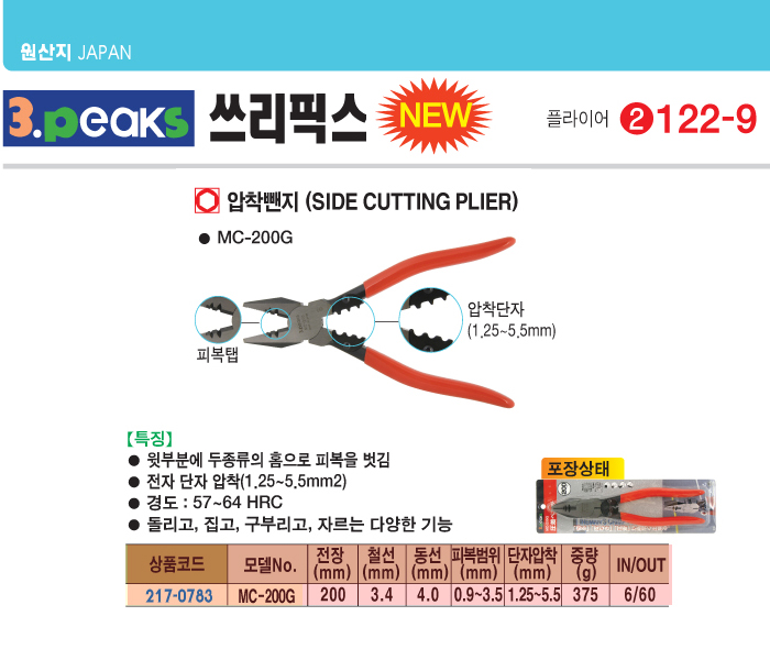 [3peaks] ¾ÐÂø»«Áö(MC-200G, 200mm)(Side Cutting Plier)