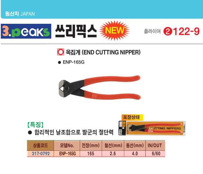 [3peaks] ¿ÁÁý°Ô(ENP-165G, 165mm)(End Cutting Nipper)
