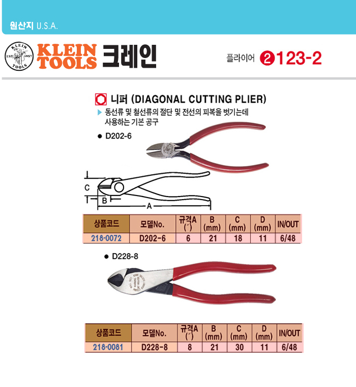 [Å©·¹ÀÎ] ´ÏÆÛ(D228-8, 8ÀÎÄ¡)(Diagonal Cutting Plier)
