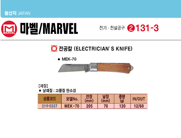[¸¶º§]Àü°øÄ®(MEK-70, 205mm)(Electrican's Knife)