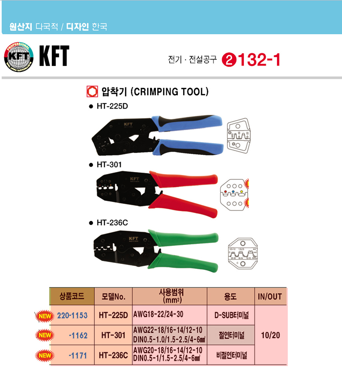 [KFT] µ¿Ãà¾ÐÂø±â(HT-225D, AWG18-22/24-30, D-SUBÅ͹̳Î)(Crimping Tool)=>¼¼½Å ¾ÐÂø±â[SB-225D/C220-1153]·Î ºê·£µå º¯°æ ÃâÇÏ