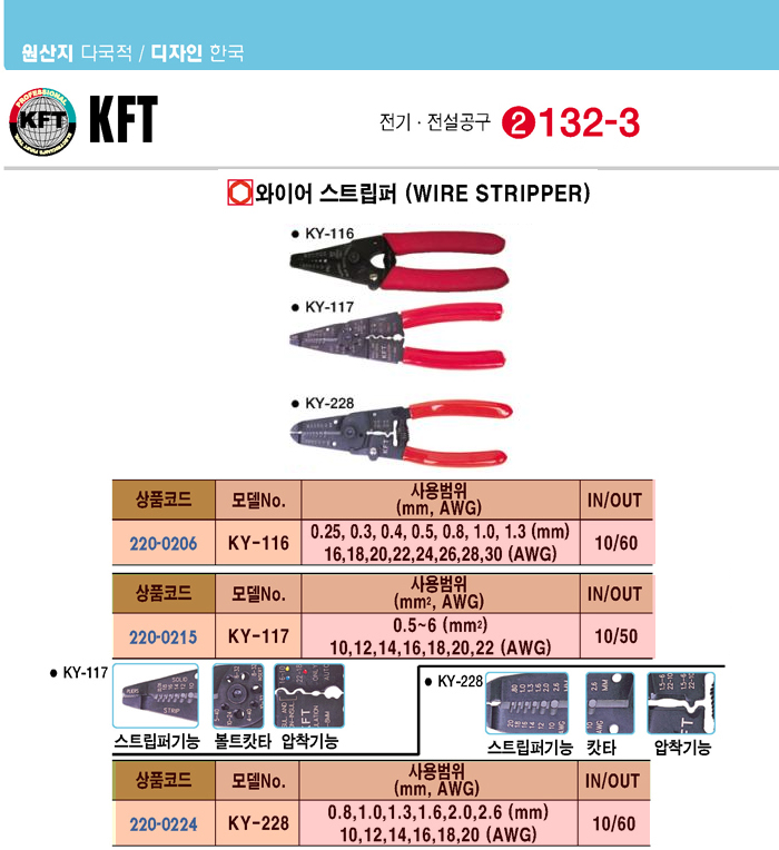 [KFT] ½ºÆ®¸³ÆÛ(KY-116, 0.25/0.3/0.4/0.5/0.8/1.3mm)(Wire Stripper)