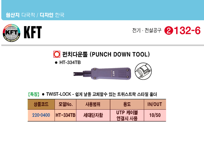 [KFT] ÆÝÄ¡´Ù¿îÅø(HT-334TB, ¼¼´ë´ÜÀÚÇÔ)(Punch Down Tool)