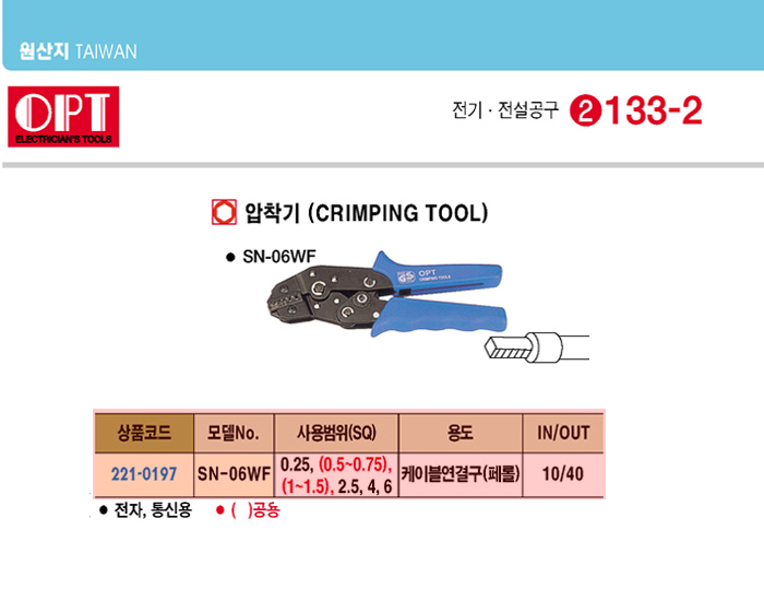[OPT] ¾ÐÂø±â(SN-06WF, 0.25/0.5-0.75/1-1.5/2.5/4/6sq)(CRIMPING TOOL):´ÜÁ¾!!