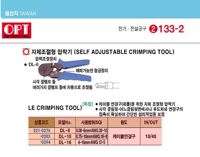 [OPT] ÀÚüÁ¶ÀýÇü ¾ÐÂø±â(DL-6, 0.08-6mm/AWG28-10)(SELF ADJUSTABLE CRIMPING TOOL):´ÜÁ¾!!