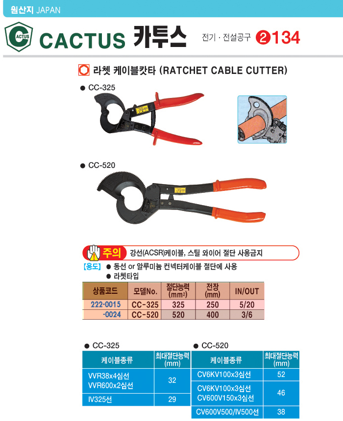 [ CACTUS] ¶óàÄÉÀ̺í ıŸ(CC-325, 325Sq)(Ratchet Cable Cutter)