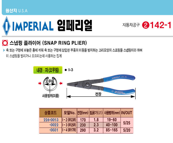 [Àӯ䏮¾ó]½º³À¸µÇöóÀÌ¾î ³»°æ-ÀÚ ¿À¹«¸²(I-3/IR25R, 40-100mm)(Snap ring plier)