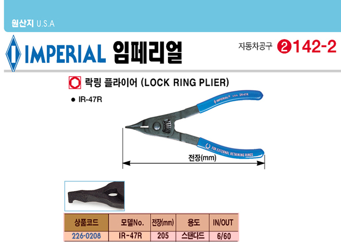 [Àӯ䏮¾ó]¶ôÅ·ÇöóÀ̾î(IR-47R, 205mm)(Lock Ring Plier)