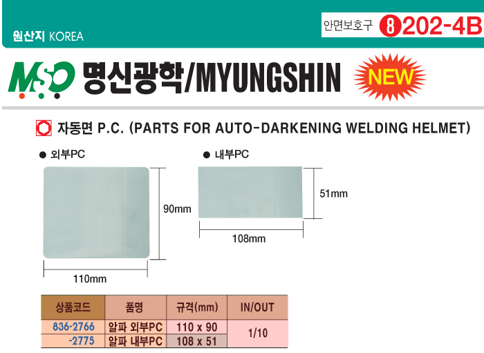 [¸í½Å]ÀÚµ¿Â÷±¤¿ëÁ¢¸é PC¿ÜºÎ¿ë(MS-90D ¾ËÆÄ¿ë 110x90mm)(Auto Darkening Welding Helmet)(10°³¼¼Æ®)3