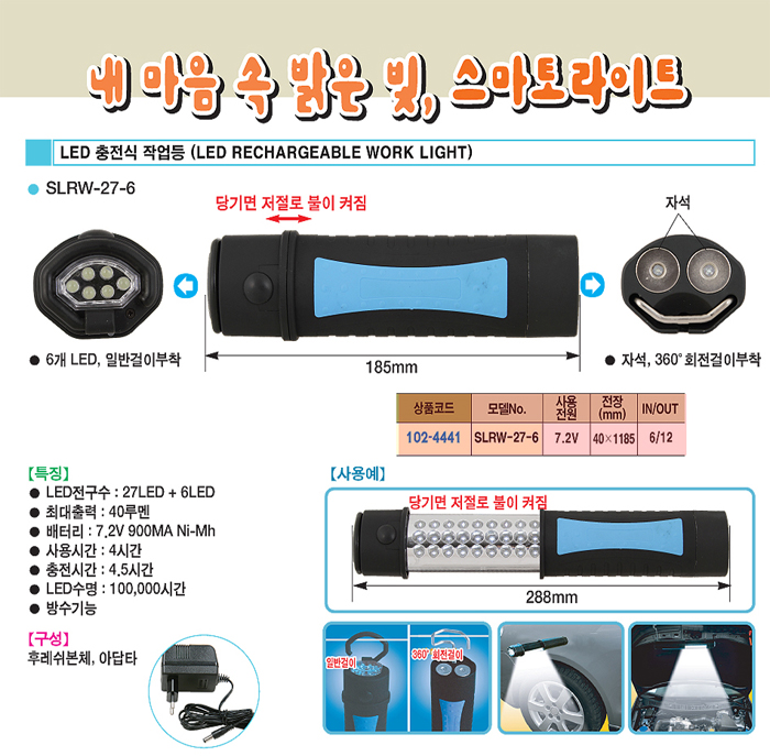 [½º¸¶Åä]LED ÃæÀü½Ä ÀÛ¾÷µî(SLRW-27-6,40·ç¸à/¹æ¼ö±â´É)(LED RECHARGEABLE WORK LIGHT)(ÁÖ¹®Àü Àç°íÈ®ÀÎ)