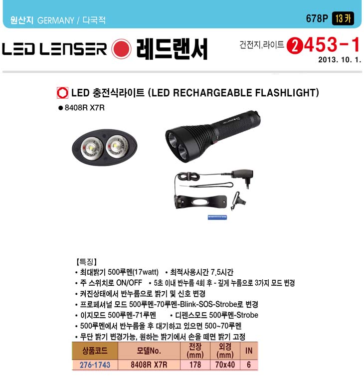 [·¹µå·£¼­] LED ÃæÀü½Ä ¶óÀÌÆ®(8408R X7R ÃæÀü½Ä, 600·ç¸à/20.0Watt)(LED Rechargeable Powerful Flashlight)