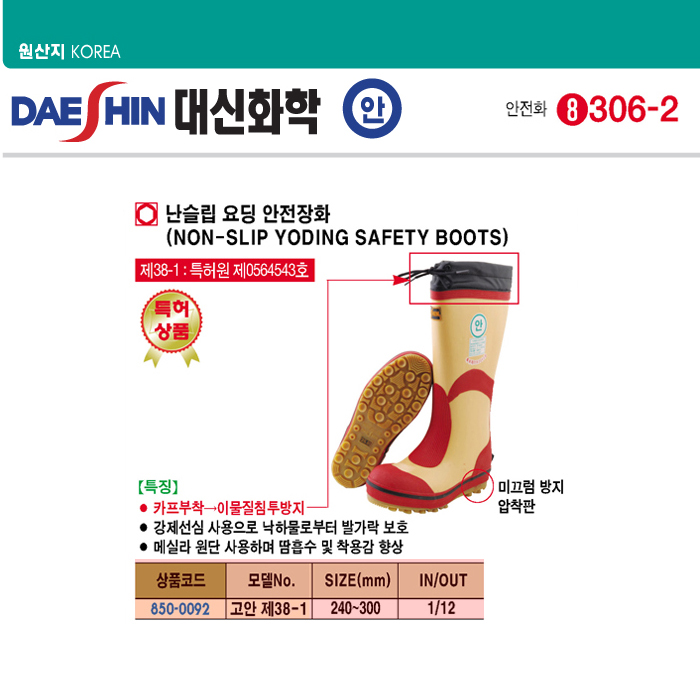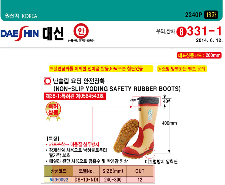 [´ë½Å] ³­½½¸³¿äµù¾ÈÀüÀåÈ­(°í¾ÈÁ¦38-1È£,DS-10-ND1,Ä«ÇÁºÎÂø)(Nonslip Yoding Safety Rubber Boots With Cuff)