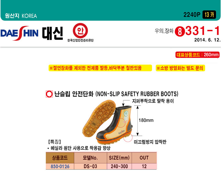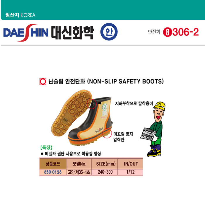 [´ë½Å] ³­½½¸³¾ÈÀü´ÜÈ­(°í¾ÈÁ¦35-1È£,DS-03,ÁöÆÛºÎÂø)(Nonslip Safety Rubber Boots)